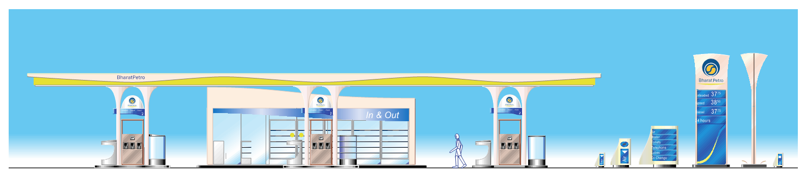 The Retail Visual Identity System for Bharat Petroleum as a roll-out program was implemented in over 22,000 retail outlets across India (as design consultants with BPCL from 2003 to 2006 and from 2016 – 2019) to implement the RVI program across BPCL retail outlets.) as part of a Future Vision Project. This program brought in visibility, reliability with increased customer base.