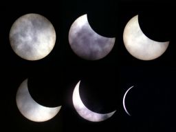 A combination photograph of six pictures shows the moon gradually blocking out sunlight to the earth during a solar eclipse over Paris August 11. This was the last total eclipse of the Sun over western Europe until 2081. km/jna/Photo by Jacky Naegelen REUTERS Received at Wednesday, August 11, 1999 - 8:34 AM |