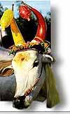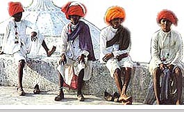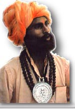 An itinerant "Sadhu" who has dedicated his life to God announces this through his orange turban and his vermilion "tilak"(a smear on his forehead).