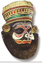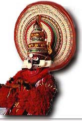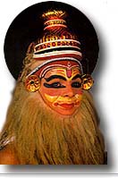 The use of red on the Kathakali dancer's face usually symbolizes evil